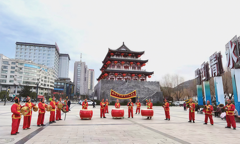 張塬村非遺傳承鼓樂(lè)隊(duì)正在進(jìn)行鼓樂(lè)表演。