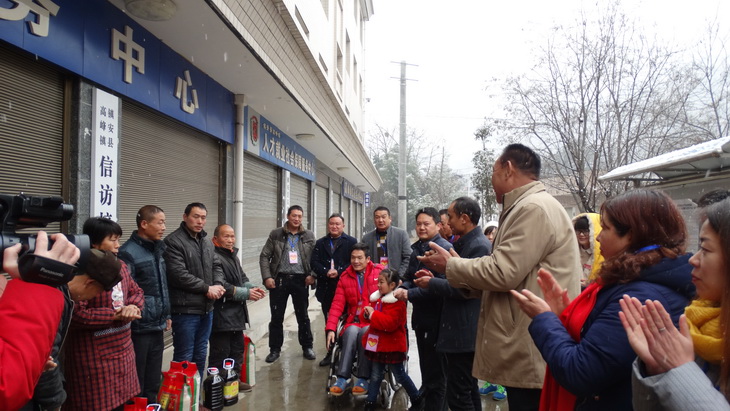 1月31日,深冬的一場(chǎng)雪鋪滿大地,料峭寒風(fēng)中,“愛(ài)心大使”馬華帶領(lǐng)愛(ài)心人士和志愿者們?cè)谘┗h飄的周末來(lái)到高峰鎮(zhèn),為各村的貧困戶們送來(lái)了春節(jié)的慰問(wèn)品。