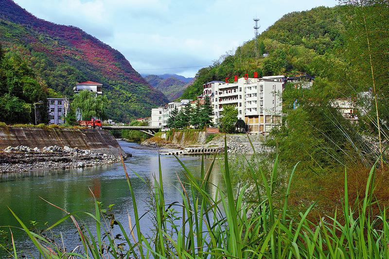 行走達(dá)仁河,在旬陽縣仁河口鎮(zhèn)入口,逆流而上,不多遠(yuǎn)只見路邊一塊矩形牌子,上書“全國一村一品示范鎮(zhèn)”,往上就進(jìn)入鎮(zhèn)安地界。河水沿著新修的河道緩緩向東南流,河道在這一段還算寬闊。