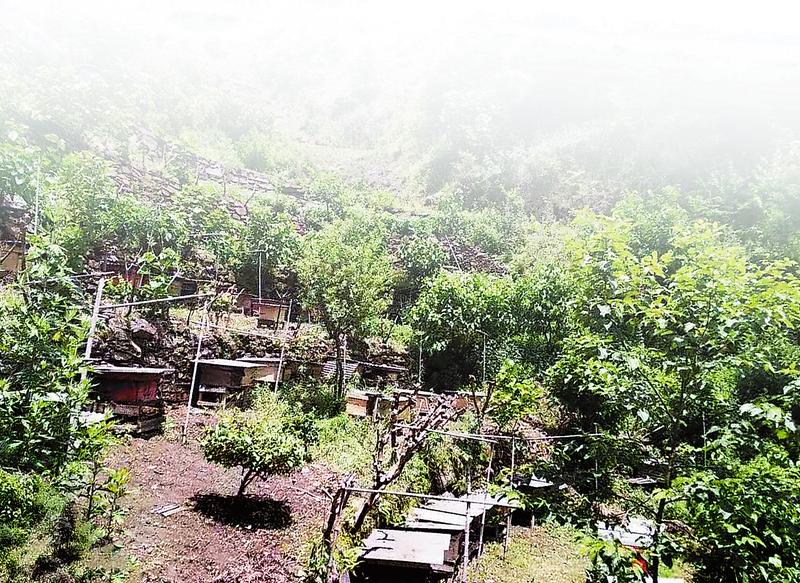 芳菲四月,燦爛的陽光照耀著雙河村兩岸花叢中飛舞的蜂群。三組養(yǎng)蜂人徐吉平顯得很興奮,他逢人就說:“我今年又增加了10箱蜂,雖然今年的春凍蜂群受了點損失,但我會努力養(yǎng)好蜂,相信來年肯定會有一個好收成。”筆者在徐吉平的養(yǎng)蜂場看到,屋檐下、山坡邊,一個個蜂箱擺放在綠草叢中,蜜蜂在林中穿梭飛舞,耳邊盡是嗡嗡聲。徐吉平揭開一個蜂箱,拎起蜂巢,只見上面密密麻麻爬滿了蜜蜂。徐吉平是當?shù)赜忻闹腥A蜂養(yǎng)殖大戶,從他爺爺輩開始養(yǎng)蜂算起,到他這一代,養(yǎng)蜂經(jīng)驗已是相當豐富。去年他家養(yǎng)了45箱中華蜂,為他帶來了可觀的收入。“我們祖祖輩輩都生長在這里,除了種地,養(yǎng)蜂優(yōu)勢最明顯。以前我養(yǎng)的土蜂一年收入只有1000多元?,F(xiàn)在養(yǎng)蜂技術提高了,在大流蜜期10到15天就能取一次蜜,去年收入近3萬元。”徐吉平高興地說。