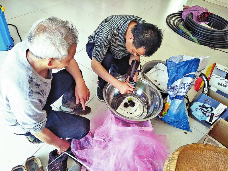 朱光平在觀察“鎮(zhèn)核1號”果實生長情況