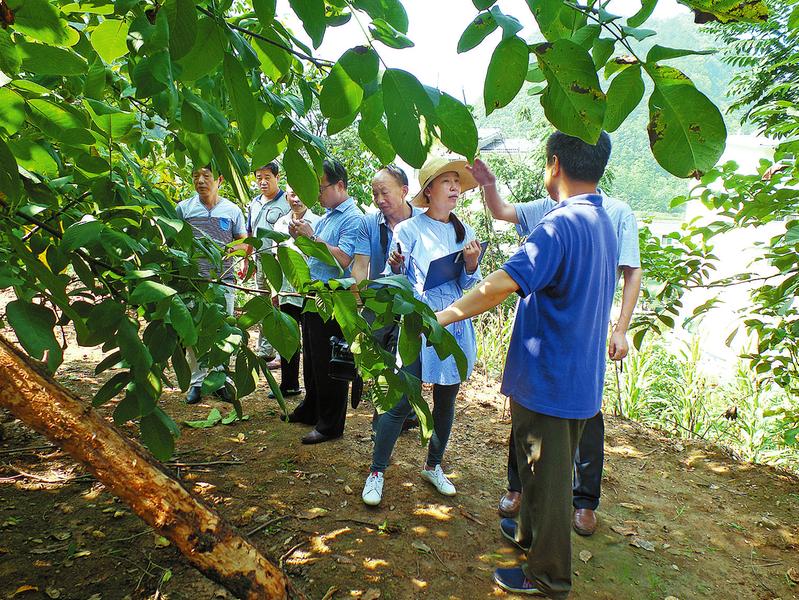 省林木種苗審定委員會專家在現(xiàn)場審定“鎮(zhèn)核1號”良種核桃