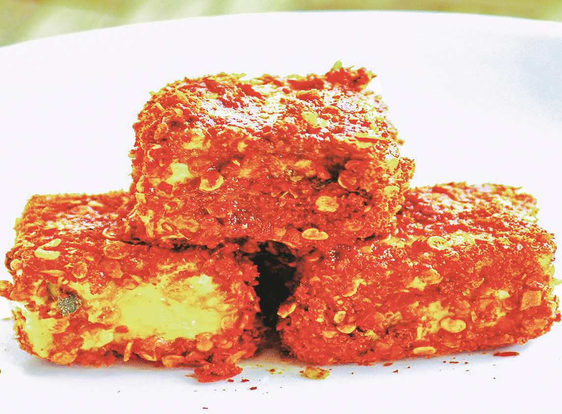 豆腐晾涼了以后,母親細(xì)心地將它切成兩三厘米見方的小塊,用潔白的紗布蓋好,放在溫度相對(duì)恒定且沒有光亮的地方,最好是家里放紅薯的地窖,因?yàn)槟抢餃囟缺容^固定。等到豆腐變黑發(fā)霉,上面長(zhǎng)出白乎乎的長(zhǎng)毛后,拿出來,撒上鹽、辣椒面以及五香大料細(xì)末,澆上少量白酒攪拌均勻,裝入壇子密封一段時(shí)間,就可以拿出來食用了。