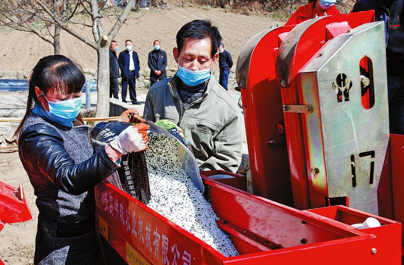今年43歲的吳積芹是柞水縣紅巖寺鎮(zhèn)閆坪村人,家中6口人,兩位老人年事已高,常年患病,孩子都在上學(xué),丈夫身體也不好,做不了重活,家中的生產(chǎn)重?fù)?dān)都壓在她一人身上。今春她家種植了4畝地的馬鈴薯,靠吳積芹一個人的話,得忙活一周時間??h農(nóng)業(yè)機(jī)械化推廣中心到閆坪村宣傳機(jī)播馬鈴薯時,吳積芹第一個報名播種自己家的地。3月18日,市農(nóng)業(yè)農(nóng)村局的馬鈴薯種植專家來到吳積芹家的田頭,給村民講解如何挑選馬鈴薯種和如何激活休眠芽。農(nóng)機(jī)專業(yè)合作社的工作人員將播種機(jī)開進(jìn)吳積芹家的地里,十來分鐘就播種好了半畝地,這樣的速度吳積芹想都想不到。